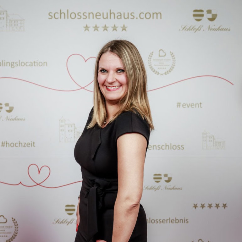 Jasmin hat eine ganz besondere Verbindung zum Schloß und liebt es, Interessenten unsere Location vorzustellen. Sie weiß einfach alles über die Räume und Geschichte von Neuhaus. Neben den Besichtigungen begleitet sie viele Hochzeiten, checkt Gäste ein und ist immer da, wenn man sie braucht. Und das, obwohl sie unter der Woche einen Kindergarten in der Nachbargemeinde leitet.